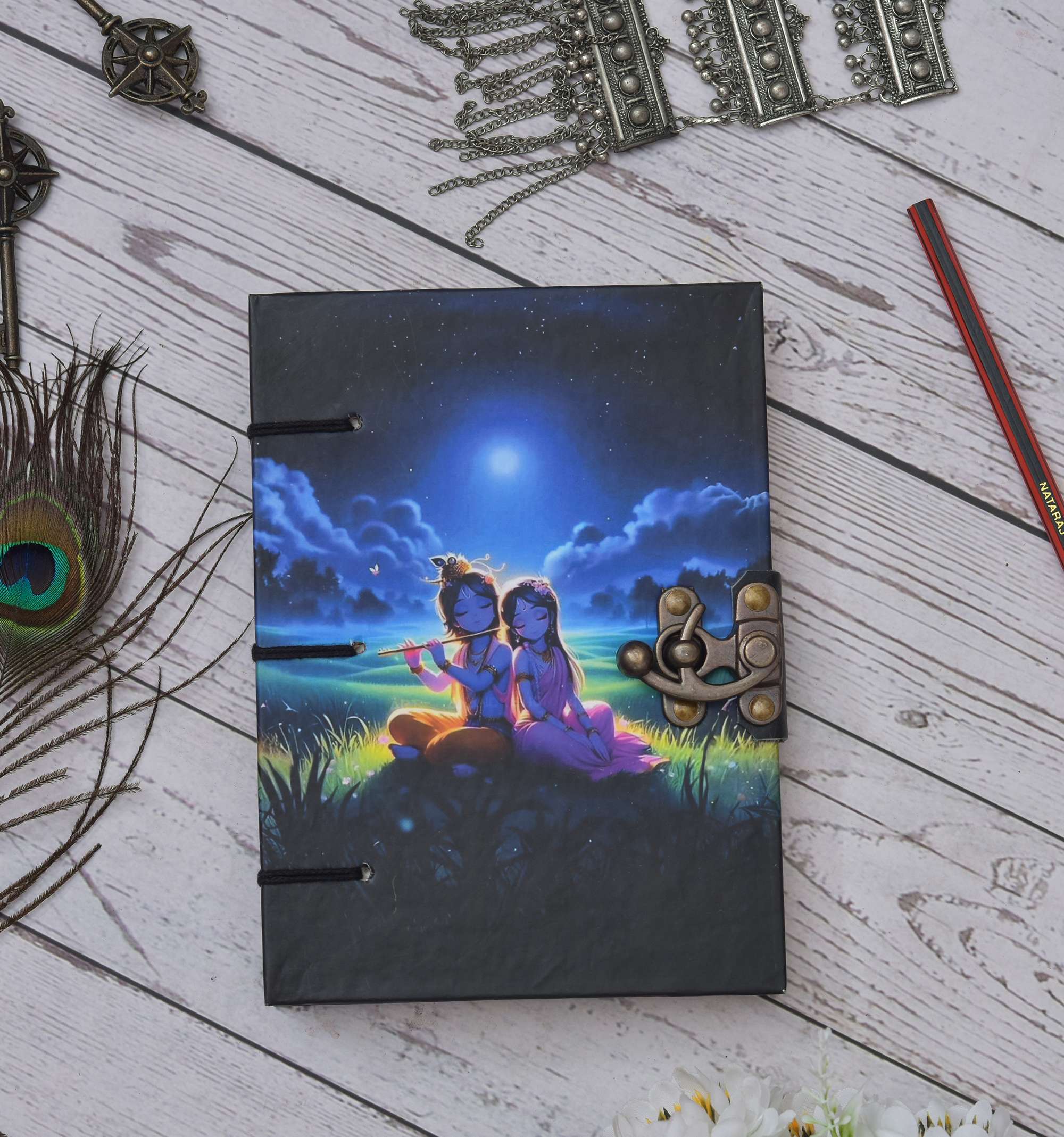 vintage handmade leather journal. Crafted with genuine leather, it radiates authenticity and charm, perfect for those who appreciate classic craftsmanship. The premium antique lock closure adds a touch of elegance and security, ensuring your thoughts and memories are safeguarded within its pages. Inside, you’ll discover 200 brown handmade pages, providing ample space for your musings, sketches, and stories to unfold. Whether it’s for journaling, sketching, or planning, this versatile journal is a timeless companion for your creative endeavors. Treat yourself or a loved one to this exquisite piece, a celebration of tradition and creativity